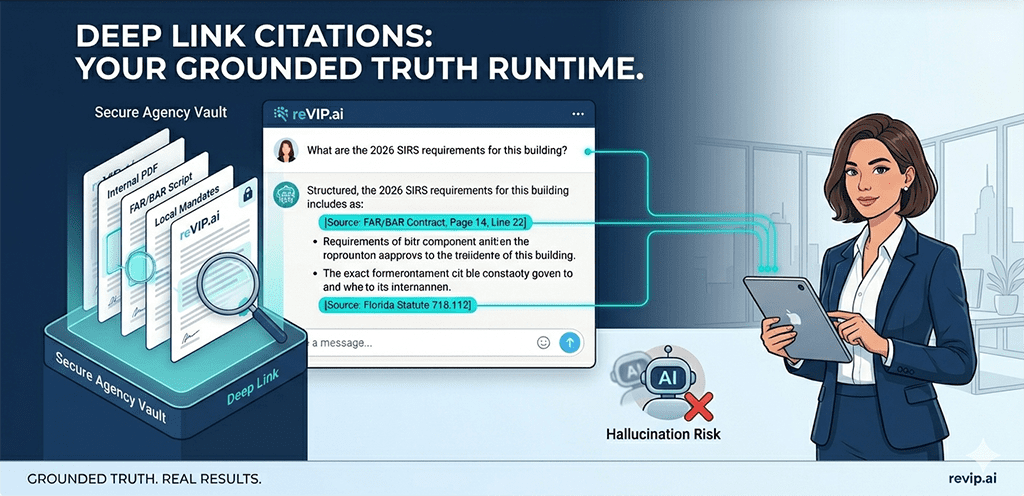 “Stop guessing. Give your agents the confidence to provide Transaction Certainty, instantly verified. Every answer reVIP.ai generates is mapped—page and line—to the exact source document in your agency’s private vault.”